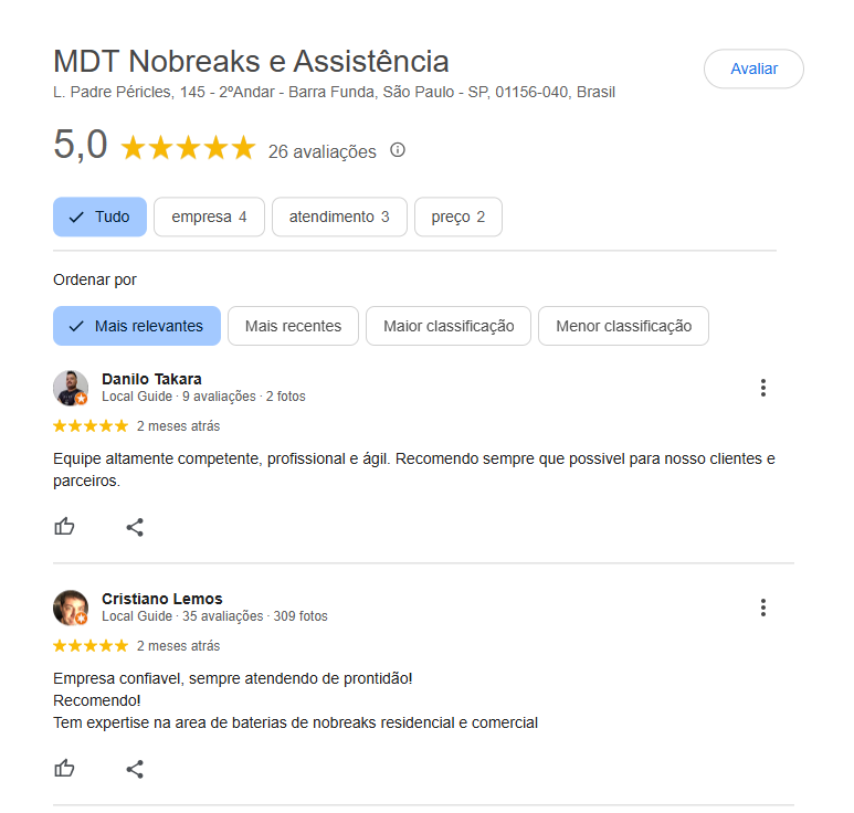 "A MDT UPS resolveu nosso problema de Nobreak rapidamente e com profissionalismo impecável."